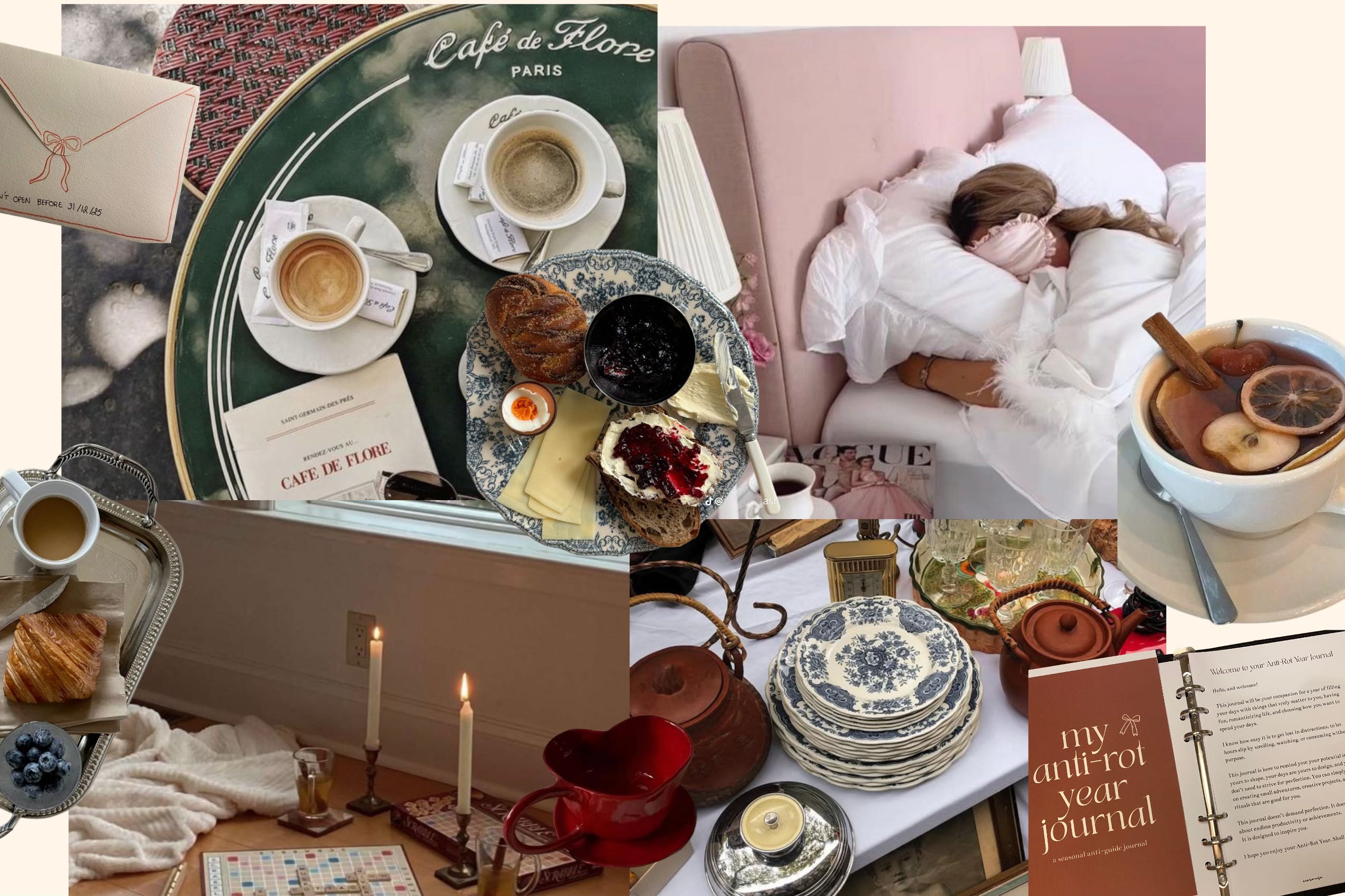Take care of your mind: Chic life is not only about what you own, but what you allow into your mind. Edit your inputs. Is spending the entire day bed-rotting and chasing cheap dopamine really more chic, or is it choosing books, articles, and long-form videos that genuinely interest us and nourish us instead? That’s why I think it’s just as important to find mental inputs that both feel good for our minds and align with our personal favorites.